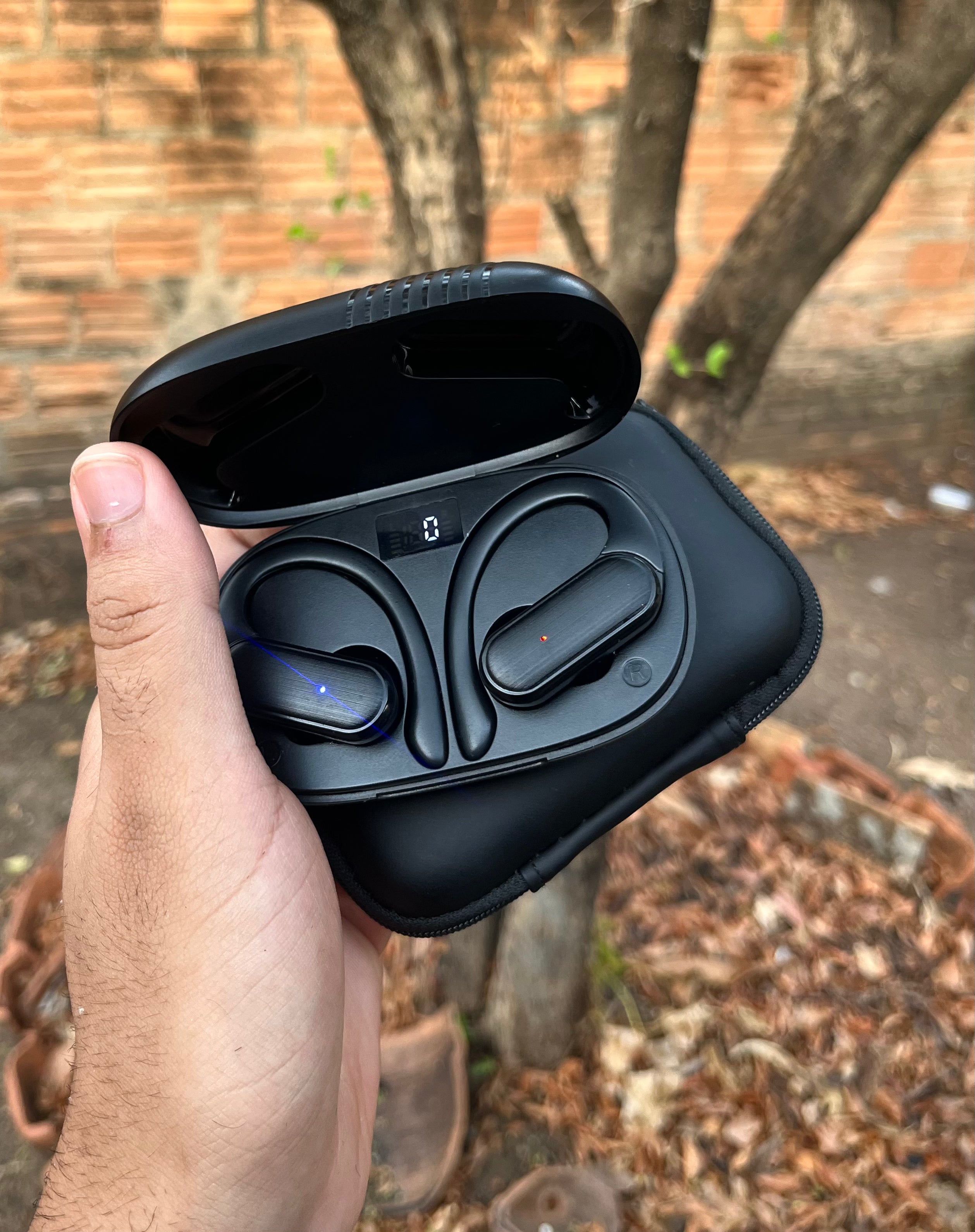 O fone VRIZ Sport Black pode durar até 15 dias de uso sem recarregar a case, considerando uma rotina de 2 a 3 horas diárias de treino. Basta guardar na caixa após o uso para manter essa autonomia.