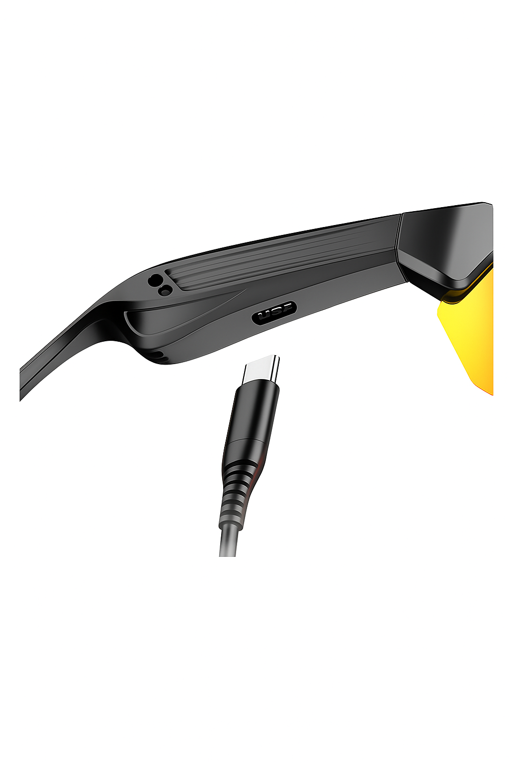 Mesmo sendo um fone de ouvido, a sua lente do óculos contém a tecnologia UV400, que reduza os danos a sua visão dos raios solares.